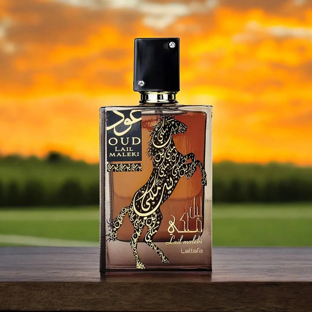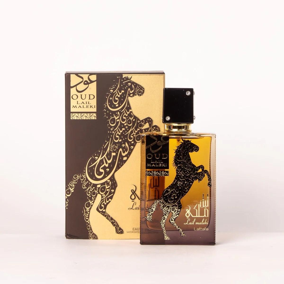 Discover Lail Maleki, a unique creation from Lattafa embodying the power and nobility of an Arabian horse depicted on the bottle. This intense oriental perfume highlights oud, a precious and mysterious ingredient, enhanced by woody and spicy accords for a striking olfactory experience. Its deep and long-lasting fragrance envelops the skin with sensual warmth and refinement.